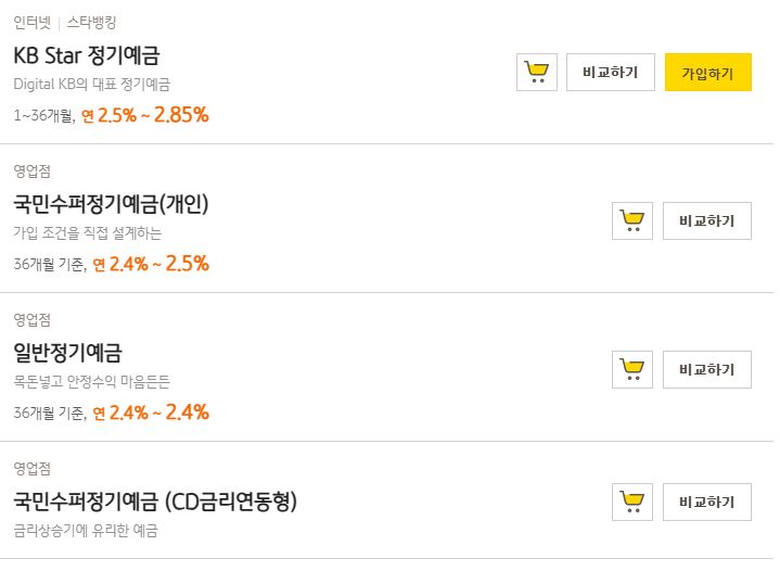 국민은행 정기예금 비교